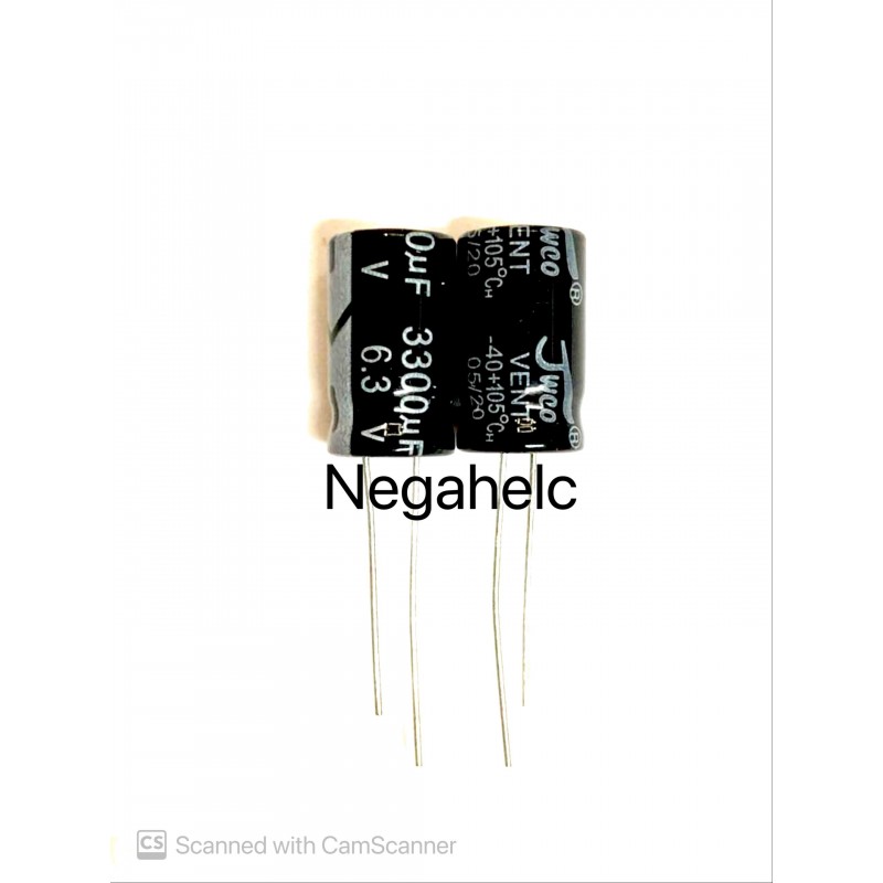 خازن 3300 میکرو فاراد 6.3 ولت الکترولیت